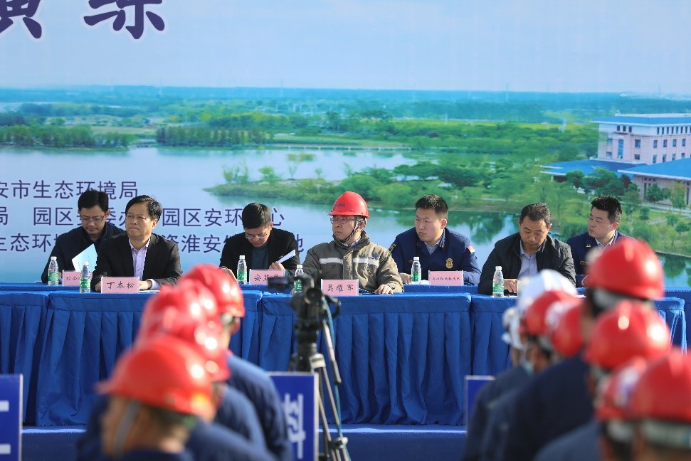 3月24日,淮安工業(yè)園區(qū)管委會與市生態(tài)環(huán)境局聯(lián)合主辦“2021年度突發(fā)環(huán)境事件應(yīng)急演練”?;窗矅鹱鳛橹衅炜萍既Y子公司,積極響應(yīng)園區(qū)號召,認(rèn)真準(zhǔn)備全力投入本次演練。園區(qū)領(lǐng)導(dǎo)楊國仁、丁本松、市生態(tài)環(huán)境綜合執(zhí)法局局長唐旭光蒞臨指導(dǎo)。